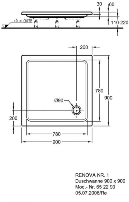 Квадратный душевой поддон Keramag из коллекции Renova Nr.1.