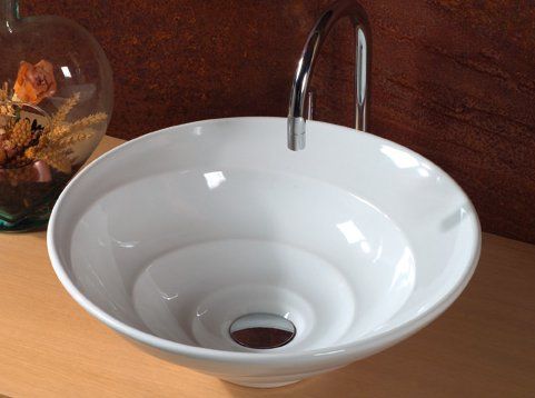 Круглая накладная раковина Varm Chiocciola. Раковина не имеет отверстий под смеситель.