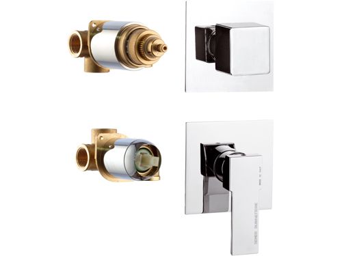 с переключателем на 4 позиции (4 выхода и 1 вход), с возможностью закрытия потока от переключателя во время смены позиции (преимущество в возможности избежать участия нежелательных позиций и не задействовать ручку смесителя, которая отвечает также за выбор температуры)