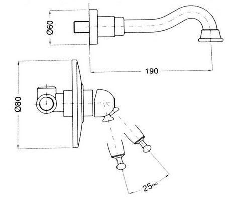| Смеситель для раковины встроенный в стену Bugnatese Oxford 6345. |