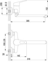Смеситель для кухни/умывальника с плоским изливом 250 мм.