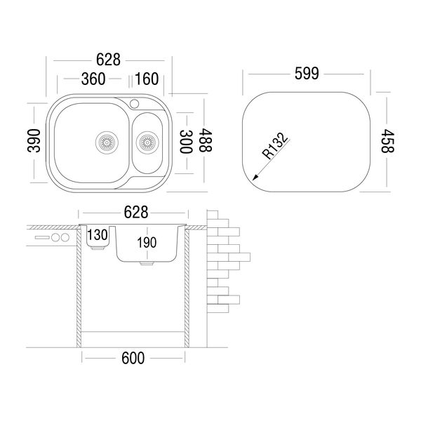 Кухонная мойка с двумя чашами – большой и малой, которая может комплектоваться коландером.