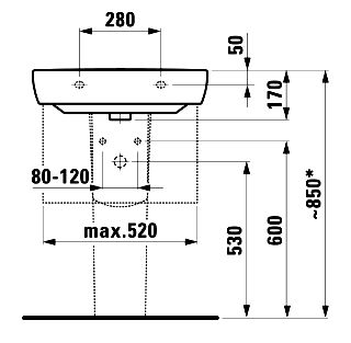 Прямоугольная раковина Laufen из коллекции PRO c одним отверстим под смеситель по центру (возможен вариант без отверстия).