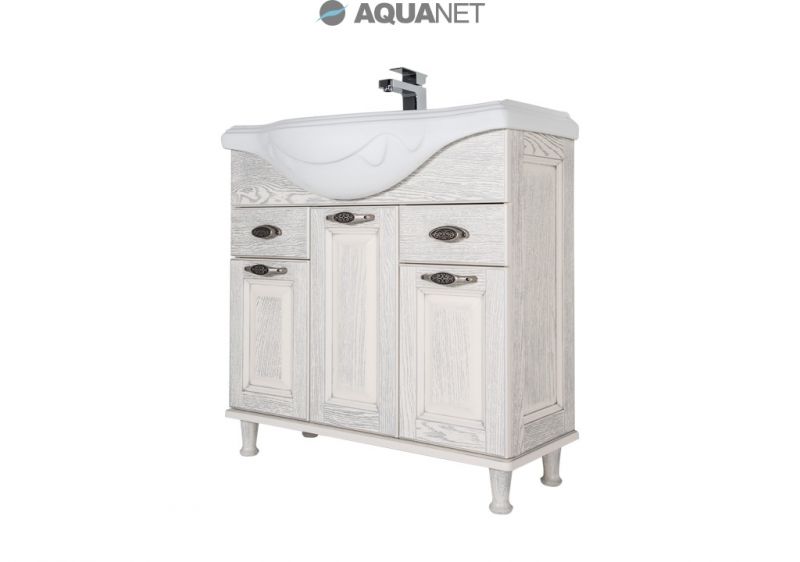 Тумба: Aquanet Тесса 85, цвет жасмин/сандал, 3 распашные дверцы, 2 выдвижных ящика (185806)