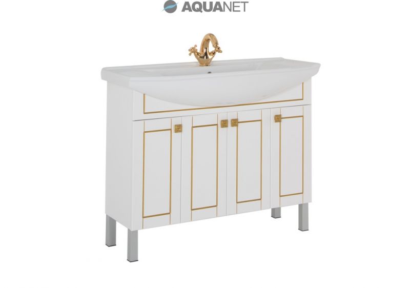 Тумба: Aquanet Честер 105, цвет белый/патина серебро, 4 распашные дверцы (186388)