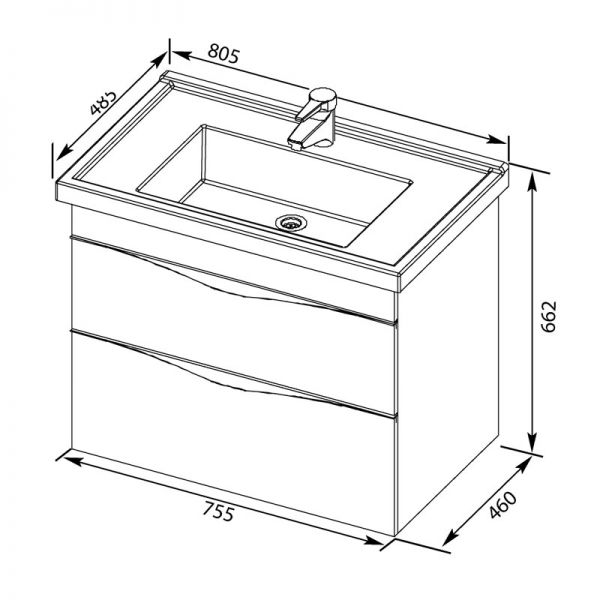 Раковина: 8080-KL 80 см, (EXCLUSIVE) Sanovit (182324)